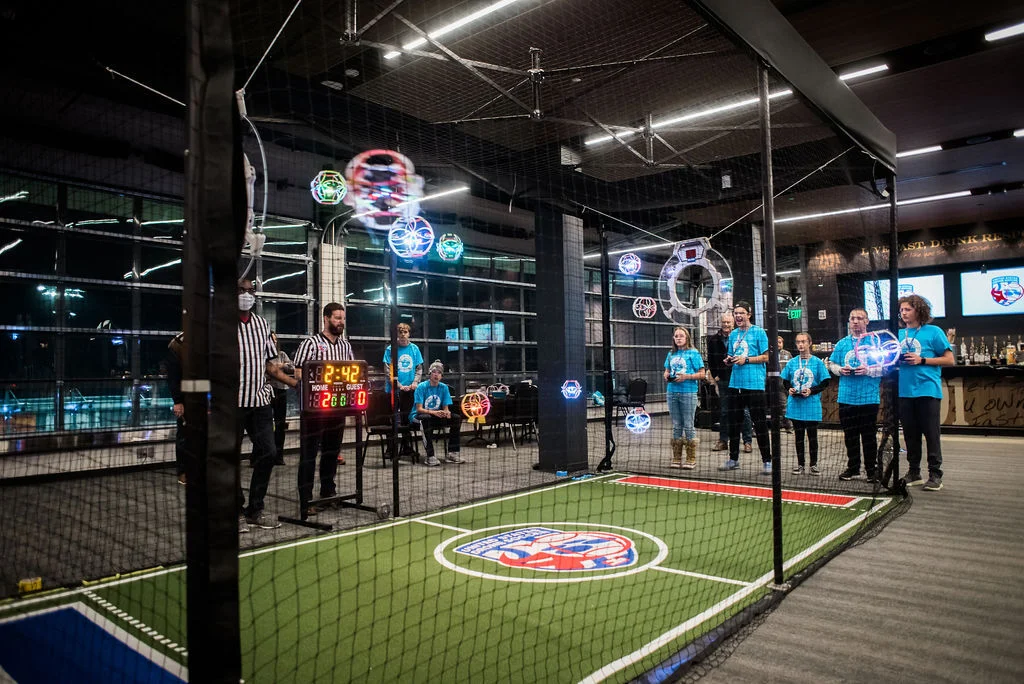 Цель игры: форвард должен успешно «забросить» дрон в кольцо соперника, добиваясь победы для своей команды.