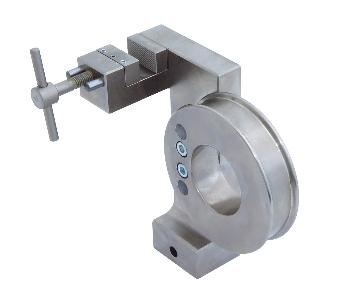 Захват имеет направляющий ролик, препятствующий перегибу и разрыву образца у основания губок. В зависимости от коэффициента трения, образец накручивается на ролик в один или несколько витков.
